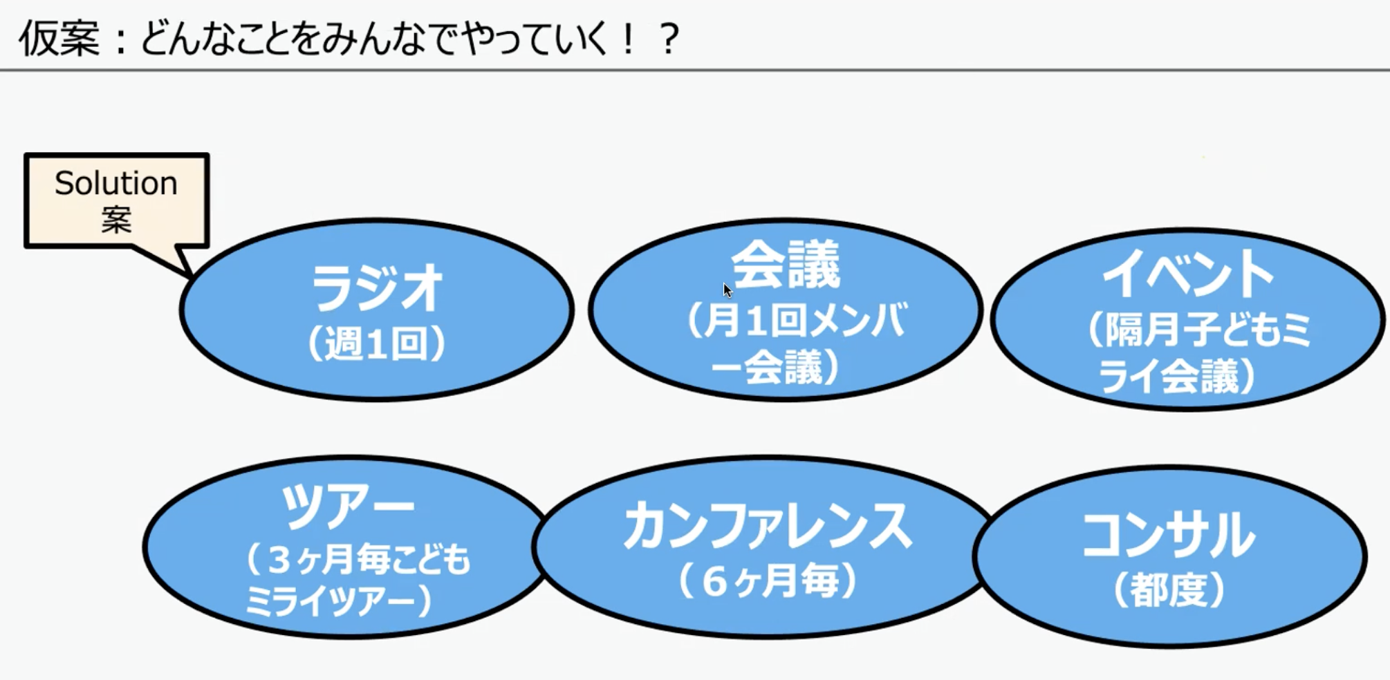 - アドバイザリーボード:社会課題を抽出し、炙り出し、解決策を議論し、解決に向けてアクション