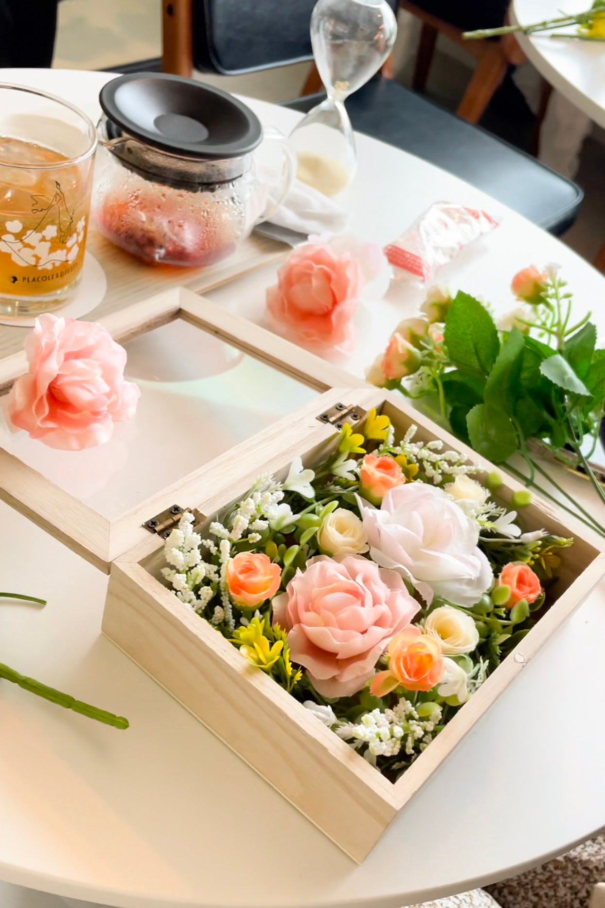 | イベント概要 | 入場料無料(オリジナルティーが一杯無料) 当日はカフェ通常メニューも販売しております。 ・フラワービュッフェ(300円~) ・レジン席札づくり(500円) ・シーリングスタンプ&メッセージカード(500円) ・フラワーリングピロー作り(500円) ・結婚式場、フォト、リング、ドレス相談会(無料) ・人気アクセサリー展示・試着(無料) |