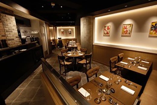フランスのガストロノミー界を牽引してきたシェフが、肩の力を抜いて、自身も楽しみながら考案したのが、カジュアル・シックなビストロノミ-「レ・コパン ドゥ ドミニク・ブシェ」です。数寄屋橋交差点裏、泰明小学校の並びにひっそりと佇むビルの地下1階。扉を開けると、そこはパリの一角に紛れ込んだような空間が、皆さんをお迎えいたします。