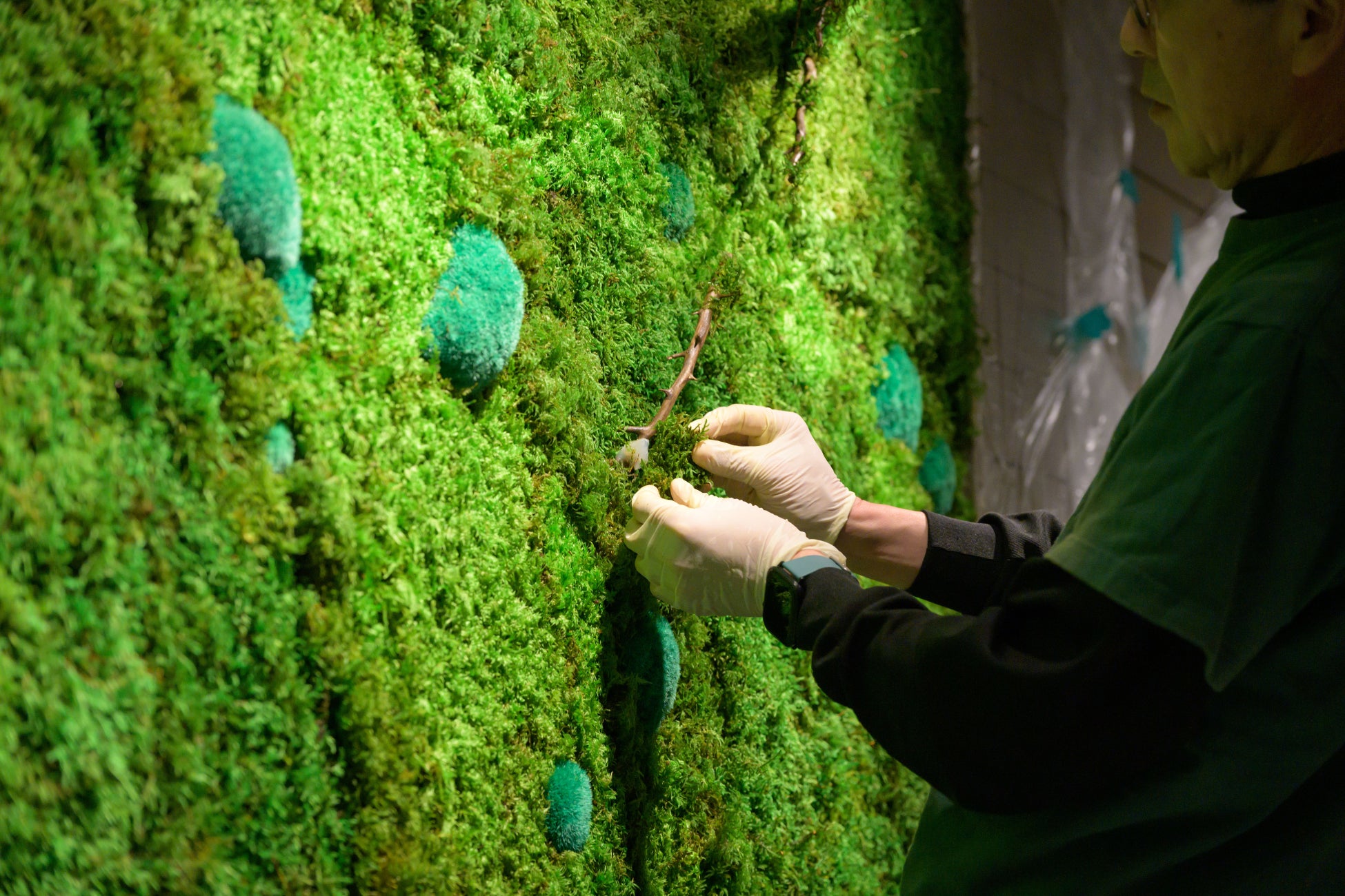 【星野リゾート 奥入瀬渓流ホテル】奥入瀬渓流の大自然を苔で表現した、特別デザインの「おいらせ苔アートウォール」誕生|作品完成日:2023年11⽉24⽇