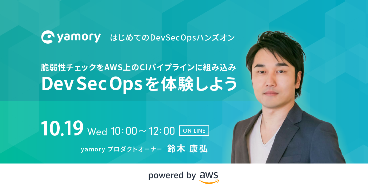 Visionalグループが運営する、脆弱性管理クラウド「yamory(ヤモリー)」(https://yamory.io/ 以下、yamory)は、アマゾン ウェブ サービス(以下、AWS)協力のもと、2022年10月19日10時より、「はじめてのDevSecOpsハンズオン」ウェビナーを開催します。