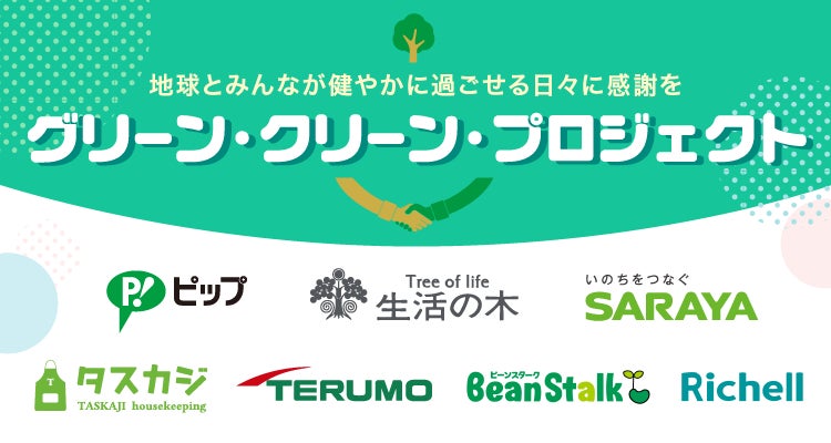 4月21日(月)より、ピップ㈱、サラヤ㈱、㈱リッチェルは各社公式SNSにて、プレゼントキャンペーンを随時実施中です。グリーン・クリーン・プロジェクト期間限定のキャンペーンとなっています。各キャンペーンの詳細は、特設サイトまたは各社公式SNSをご覧ください。