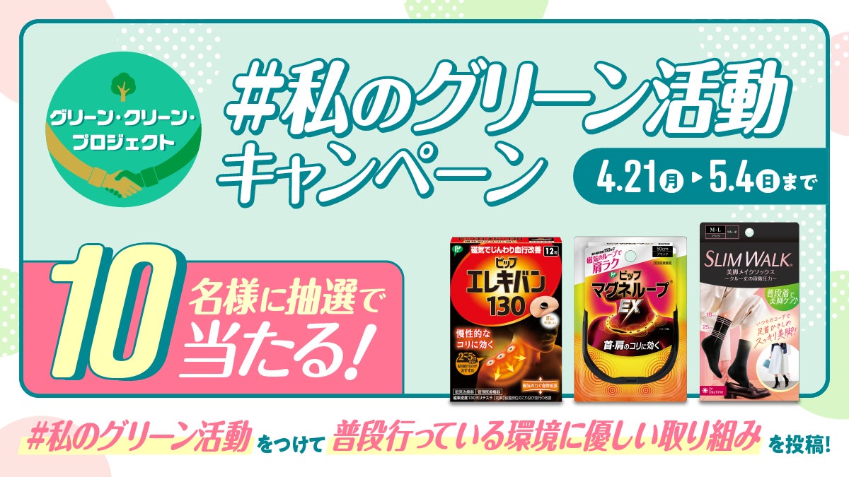 ピップ㈱の公式Xでは、4月21日(月)~5月4日(日)まで、生活者の皆さまが普段行っている環境に優しい取り組みを募集する、「#私のグリーン活動」キャンペーンを実施します。