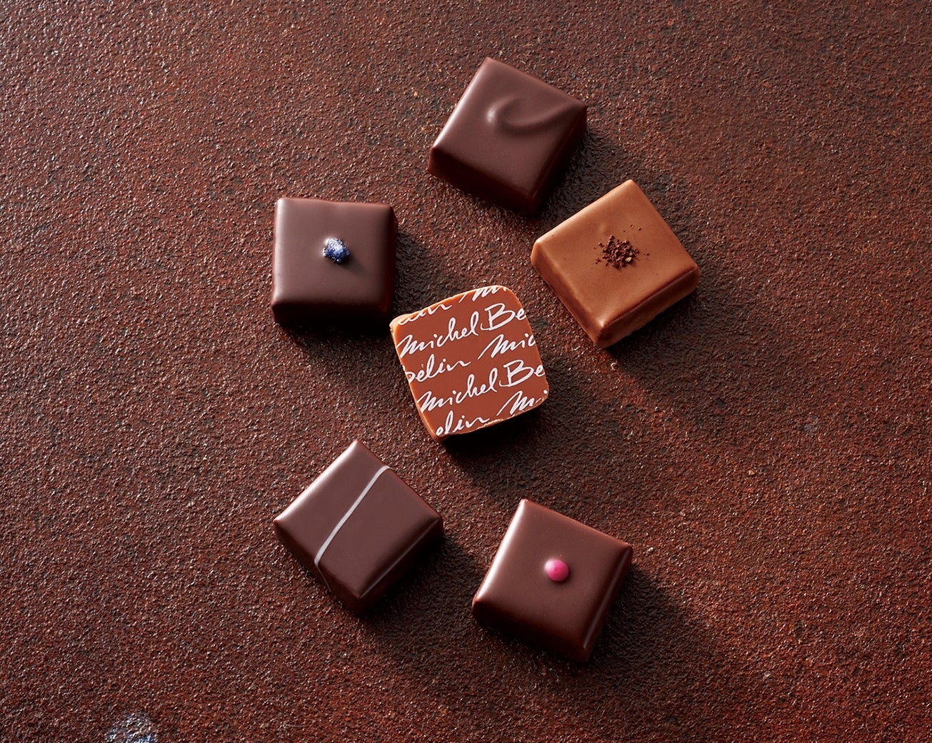 フランスで数々の賞を受賞するミッシェル・ブラン氏。新作カプチーノのガナッシュショコラやいちごのガナッシュショコラ、南フランスのアルビ名産のすみれのガナッシュショコラなど繊細でなめらかなショコラをアソートしました。