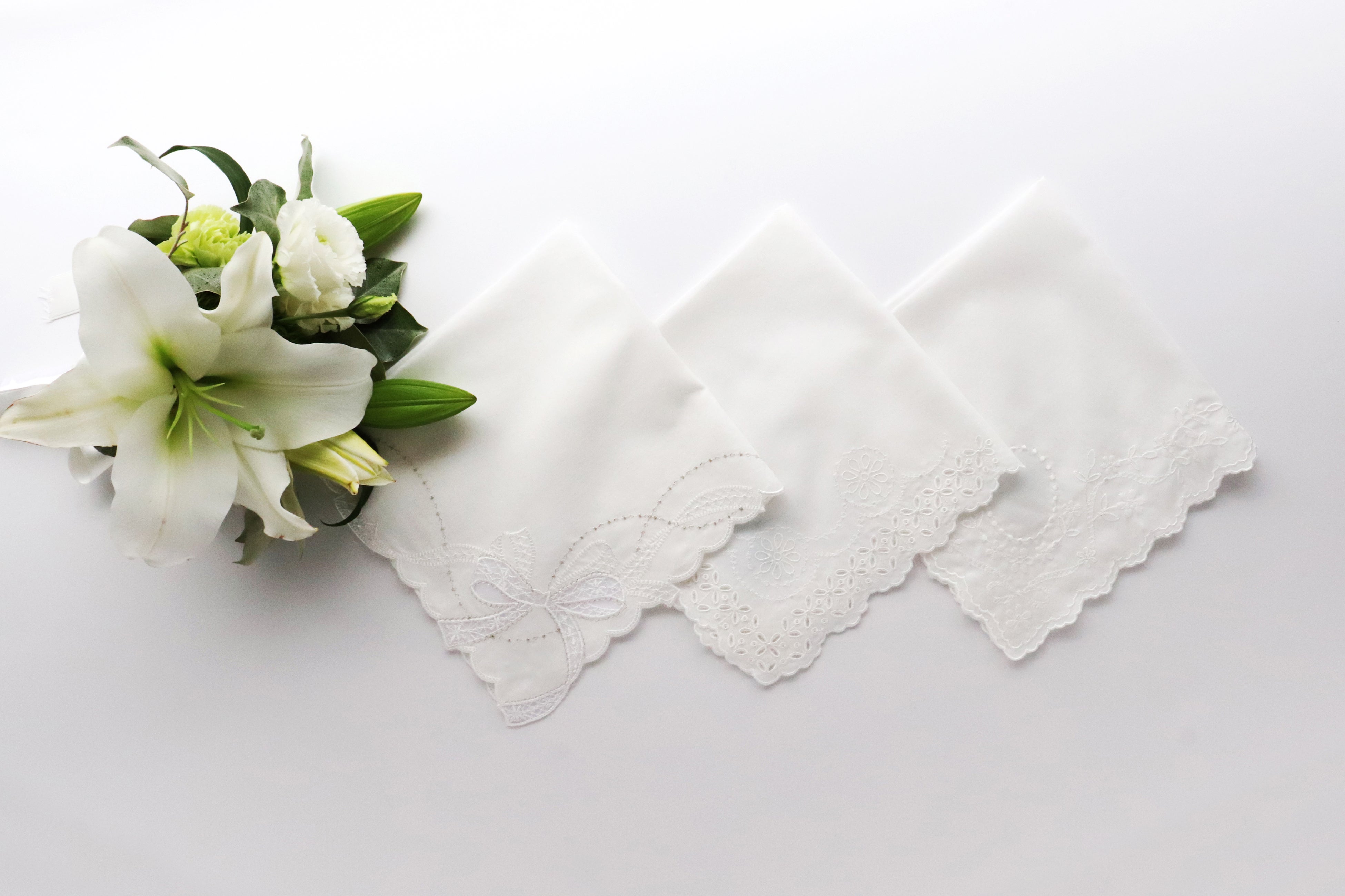 【ブライダルハンカチ】リボンや花をモチーフにクラシカルな新作ハンカチを発売