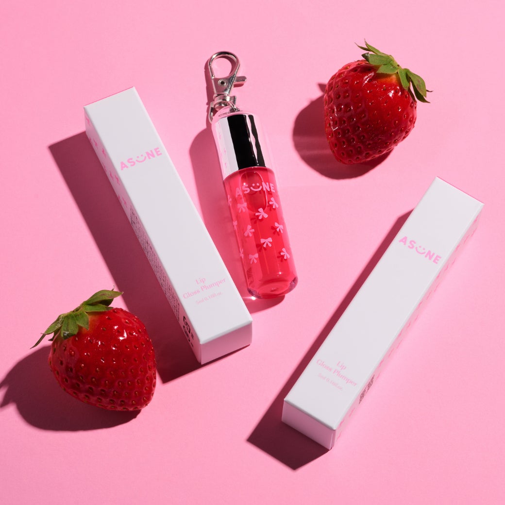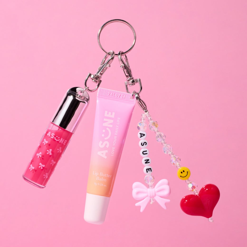 新商品となるストロベリーピンクカラーの「 Lip Gloss Plumper 」と「 Lip Butter Balm 」に加え、中町綾がデザインしたASUNEオリジナルの「 ASUNE Lip Charm 」が付いた「ASUNE Strawberry Lip Kit」は、ASUNEのリップアイテムをまとめてお試しできる特別ボックス。