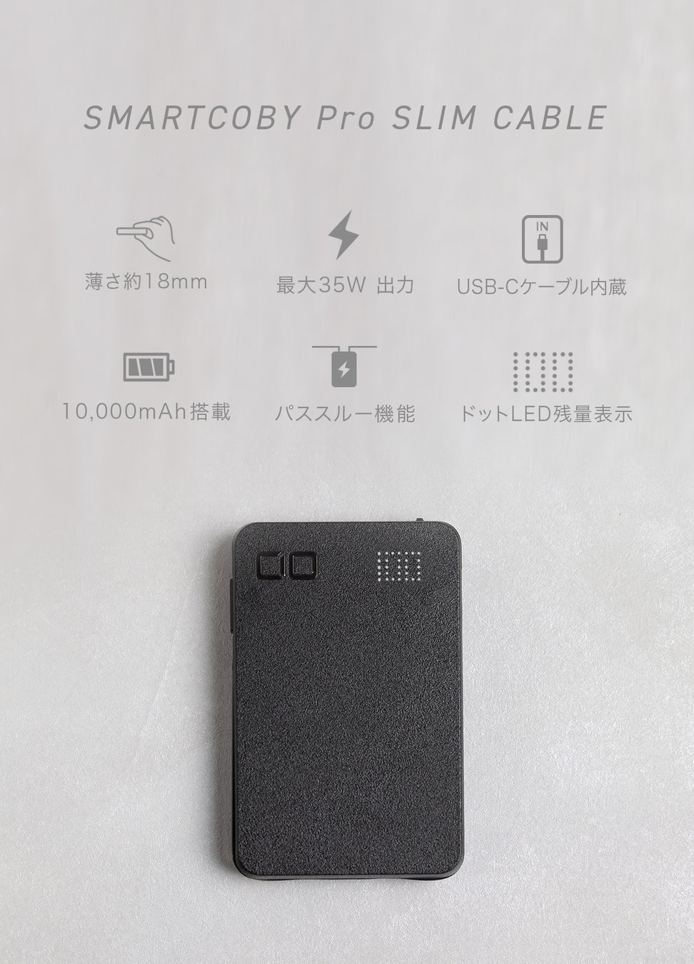 スマホもPCもコレ1台 超薄型の35W出力ケーブル内蔵モバイルバッテリー『SMARTCOBY Pro SLIM CABLE』