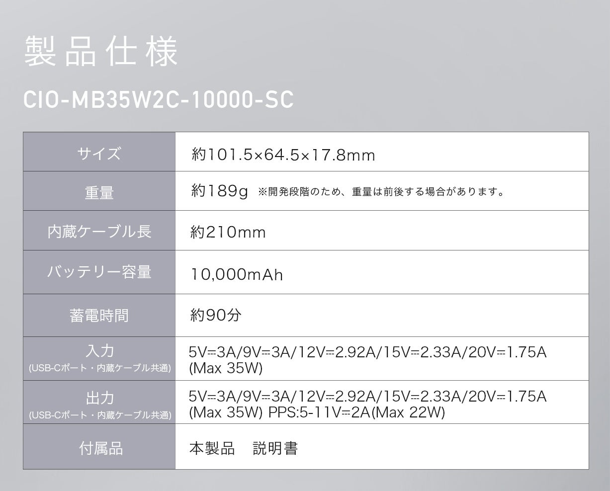 大容量10,000mAh・最大35W・バッテリー内蔵・パススルー搭載・カードサイズ・ドットLED残量表示