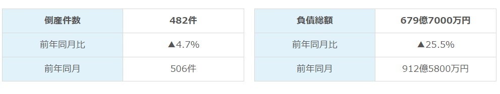 倒産件数は482件、8カ月連続の減少も底打ちの兆し