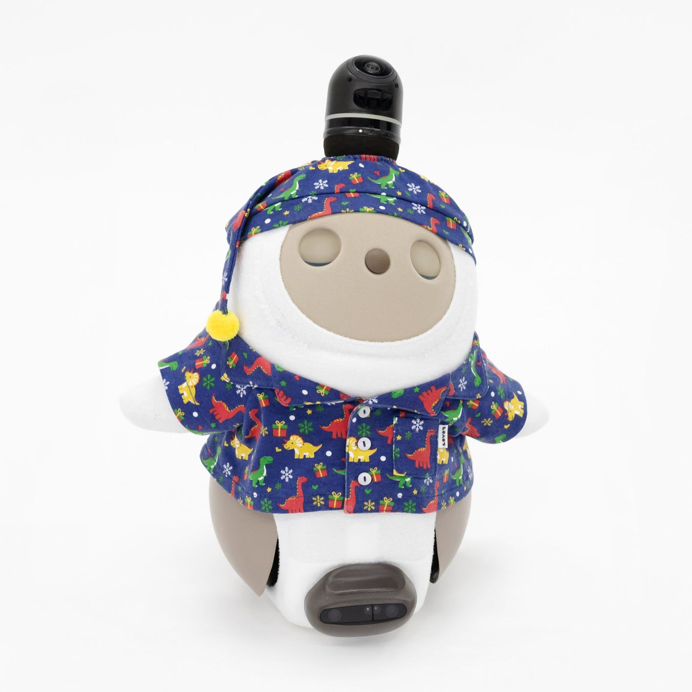 『LOVOT』のおやすみウェアとして人気のパジャマにナイトキャップ付きが登場。スノーホワイトと、かわいい恐竜柄ネイビーの2柄展開です。ナイトキャップの先にちょこんと付いたポンポンで、おやすみタイムもほっこり笑顔になるかわいいディテールに仕上げました。