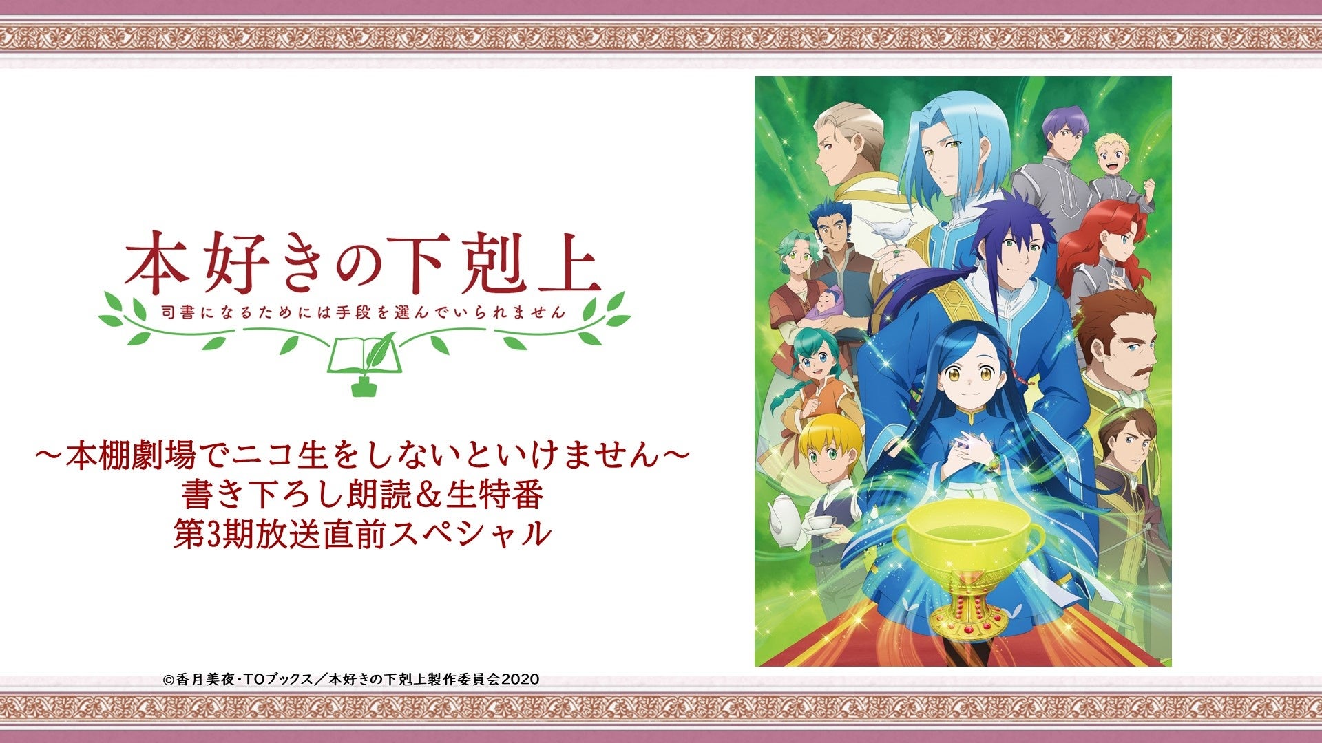 ・「本好きの下剋上 ~本棚劇場でニコ生をしないといけません~」 書き下ろし朗読&生特番、第3期放送直前スペシャル(2022.4.10放送)