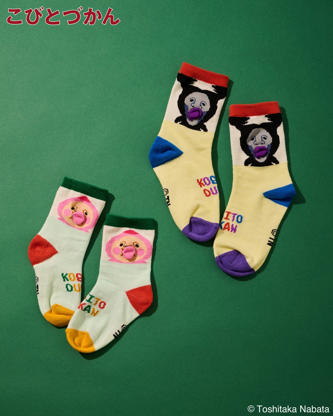 立体的になっているコビトの唇が特徴的な「こびとづかん」のクルーソックス。