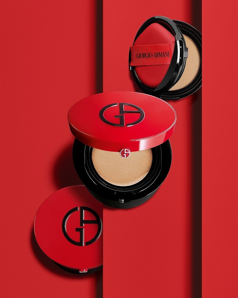 オートクチュールからインスパイアされたコンパクトはアルマーニレッドを基調とし、手に取るだけでパワーを授けてくれるアクセサリーのようです。