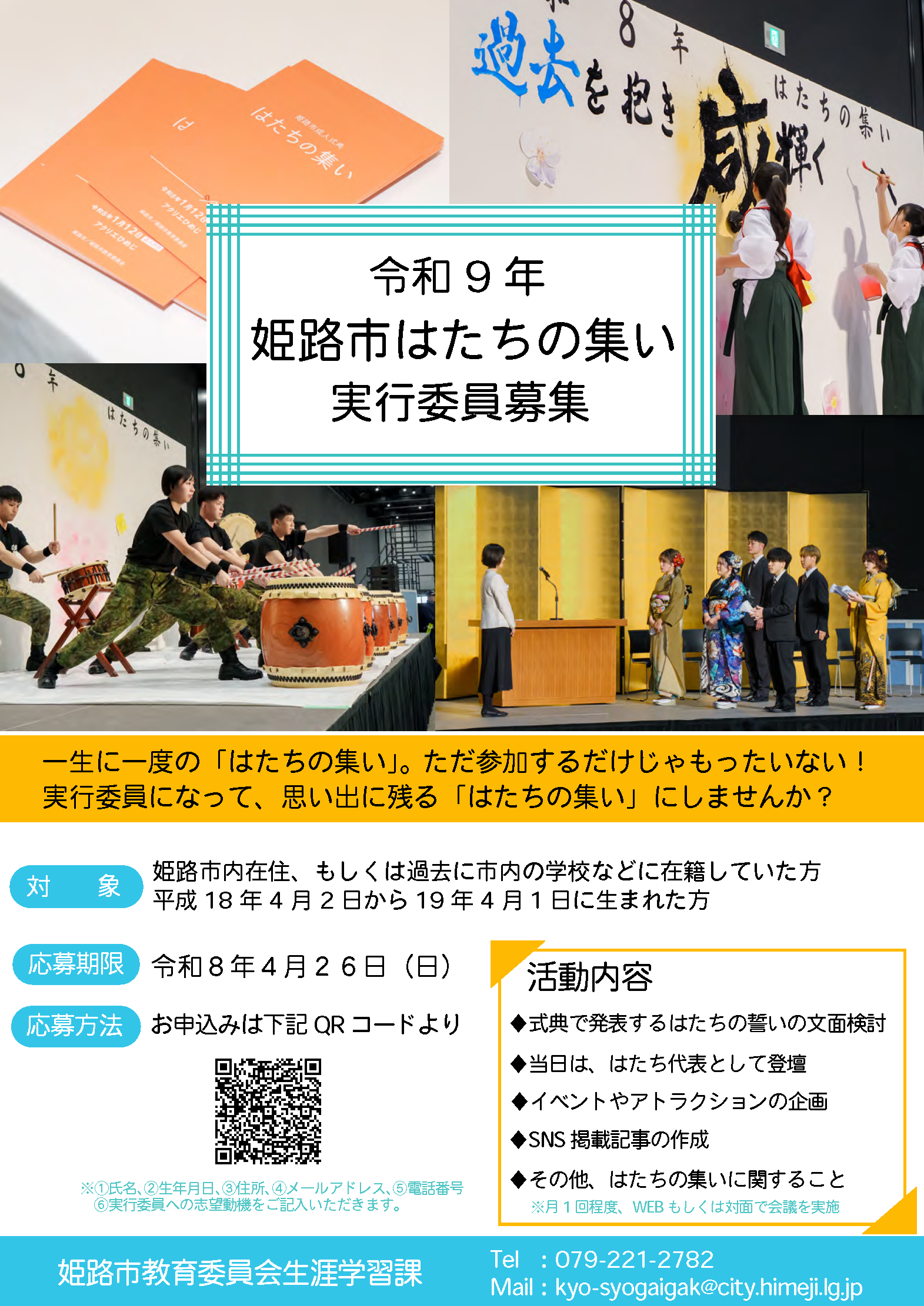 平成18年(2006年)4月2日から平成19年(2007年)4月1日生まれで、姫路市内に住所のある人