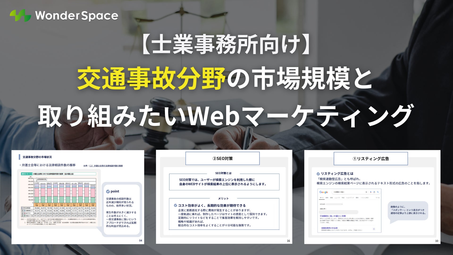 士業とWebマーケティングの両方に精通したWonderSpaceが交通事故分野に関する最新のトレンドとおすすめのWebマーケティング施策を解説!