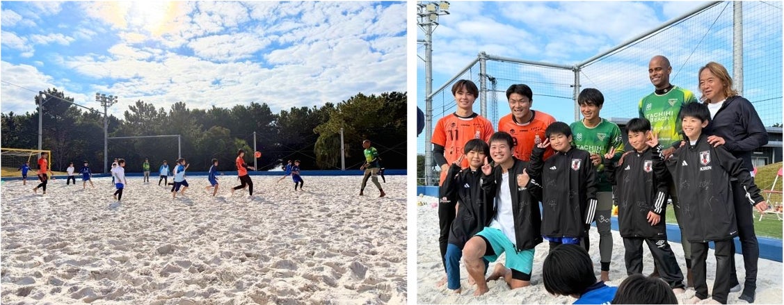 この時期は砂が冷えてくるため、プロ選手たちは専用ソックスを着用して臨むそうですが、子どもたちは寒さをものともせず、裸足で元気いっぱいに走り回っていました。