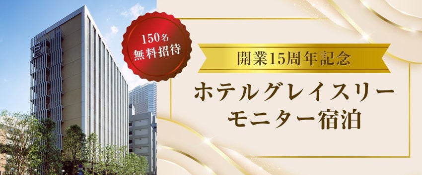 藤田観光株式会社WHG事業部(所在地:東京都文京区 事業部長:松田 隆則)では、ホテルグレイスリー開業15周年を記念して、合計150組様を無料でご招待するモニター宿泊を実施いたします。10月2日(月)よりご宿泊者の募集を開始しております。
