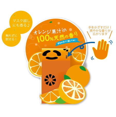 植物⽣まれの天然オレンジの⾹りをもっと気軽に知ってもらいたい!そんな思いから、フレッシュな⾹りが⼿をかざすだけで試せる楽しい「オレンジファン」をご⽤意いたしました。ぜひご体感ください。