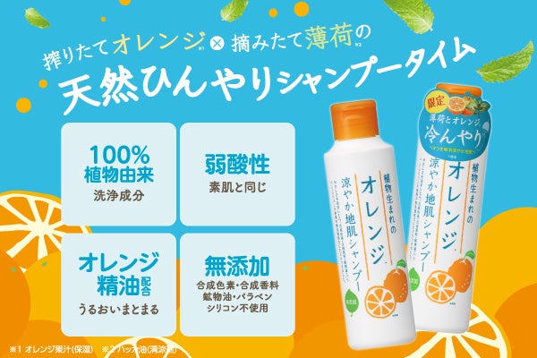 \蒸し暑い季節に!/天然オレンジと薄荷のスーッと爽快シャンプータイム『植物生まれのオレンジ涼やか地肌シャンプー』が夏季限定で今年も登場!