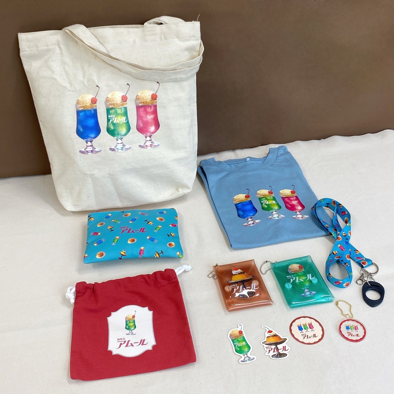 純喫茶の定番商品である3色のクリームソーダや固めの昭和プリンをモチーフにした、色合いが可愛いアイテム。