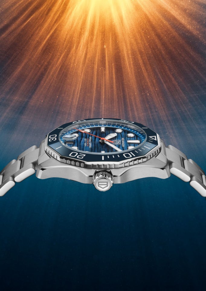 アクアレーサー レガシーの次なる進化として、タグ・ホイヤーは、高度なクラフツマンシップが再確認される「アクアレーサー プロフェッショナル300 デイト」と「アクアレーサー プロフェッショナル300 GMT」を発表しました。深度やタイムゾーンに挑む人々のために開発されたこの新作が、“境界”を超え、限界の先へと進む並外れたパフォーマンスを実現します。そこには、卓越したデザインに比類のない機能性を組み合わせた、タグ・ホイヤーの革新的なスピリットが表現されています。