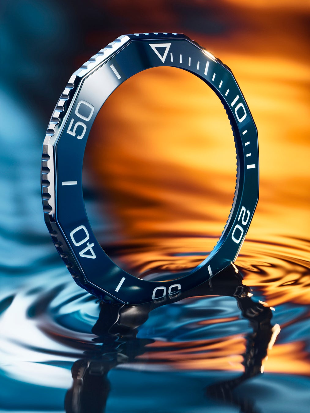 そのレガシーを忠実に守りながらも、現代のダイバーに合うよう手が加えられた新作モデルは、アクアレーサー プロフェッショナル300ならではの装着感の良さと堅牢さを体現することで、人生のさまざまな冒険に立ち向かっていく人の究極のパートナーとなるよう作り込まれています。アイコニックな12面カットのセラミック製ベゼルが滑らかな回転をし、どんなに深く潜っても精確さを約束する光り輝く蓄光性ポインターを備え、あらゆる条件下での抜群の信頼性を保証します。さらに、ケースバックにはダイビングヘルメットがあしらわれ、ダイバーズウォッチの本質を象徴しています。
