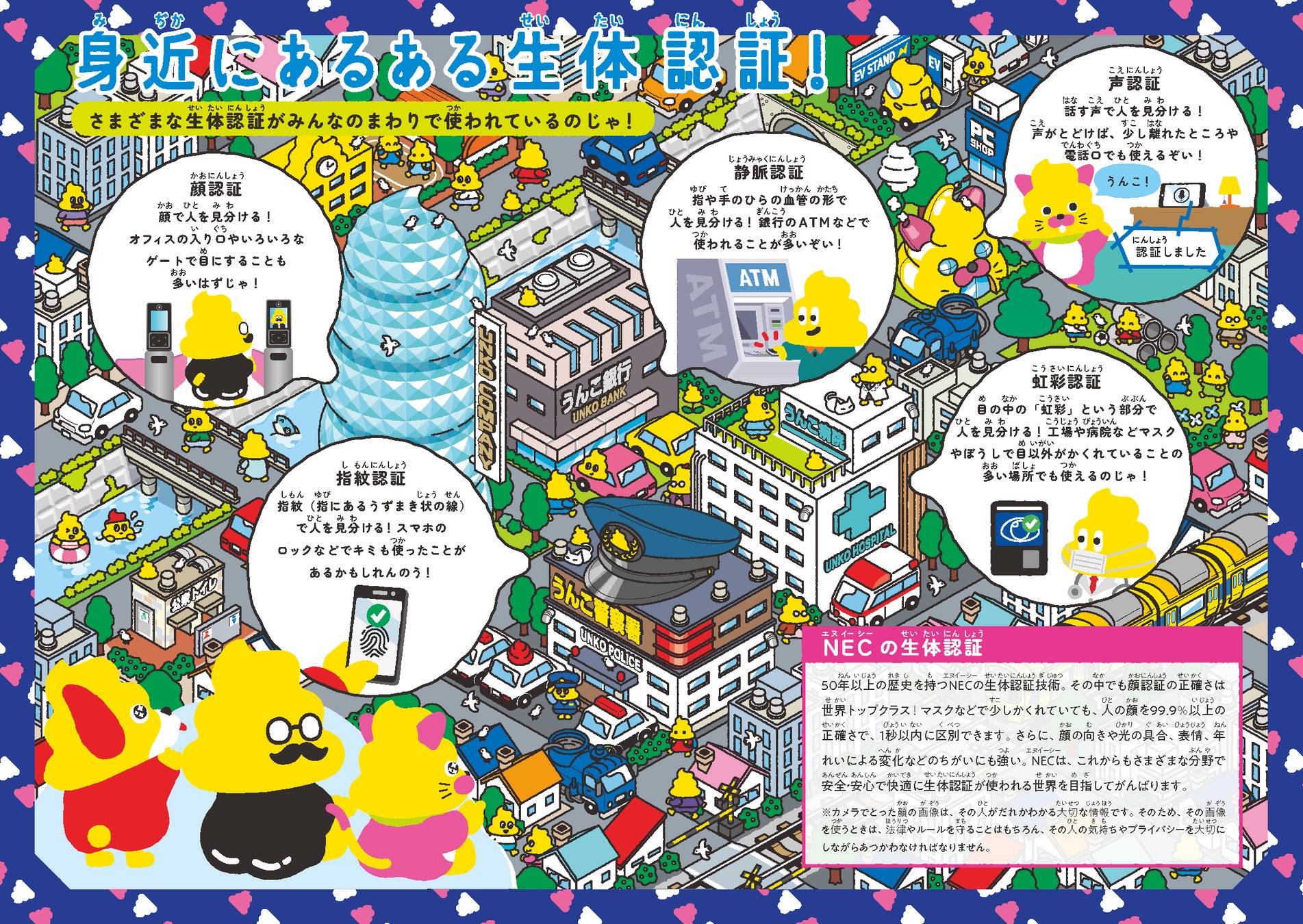 空港、スマートフォン、学校や街のあちこち――。「顔を見るだけで、どうしてわかるの?」うんこ先生と一緒に、私たちの生活を支える顔認証技術のしくみを学べるNEC×うんこドリルの新作啓発冊子が誕生しました。