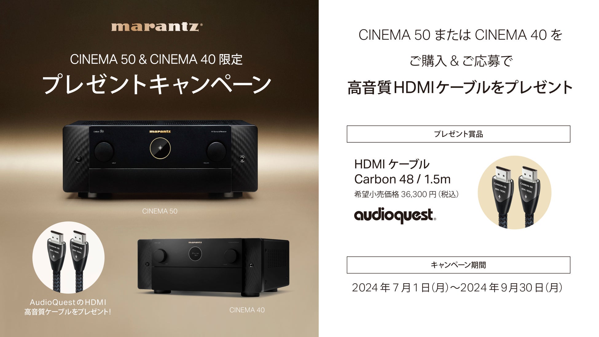 マランツは、2024年7月1日(月)より「ホームシアターをグレードアップ 高音質HDMIケーブルプレゼントキャンペーン」を実施いたします。