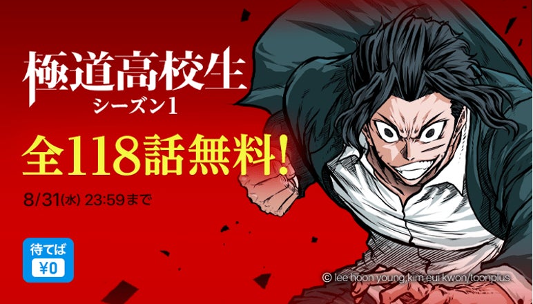 この度、電子マンガ・ノベルサービス「ピッコマ」では、アウトロー系SMARTOON作品『極道高校生』のシーズン1を8/18(木)〜8/31(水)の期間限定で全話無料公開いたします。
