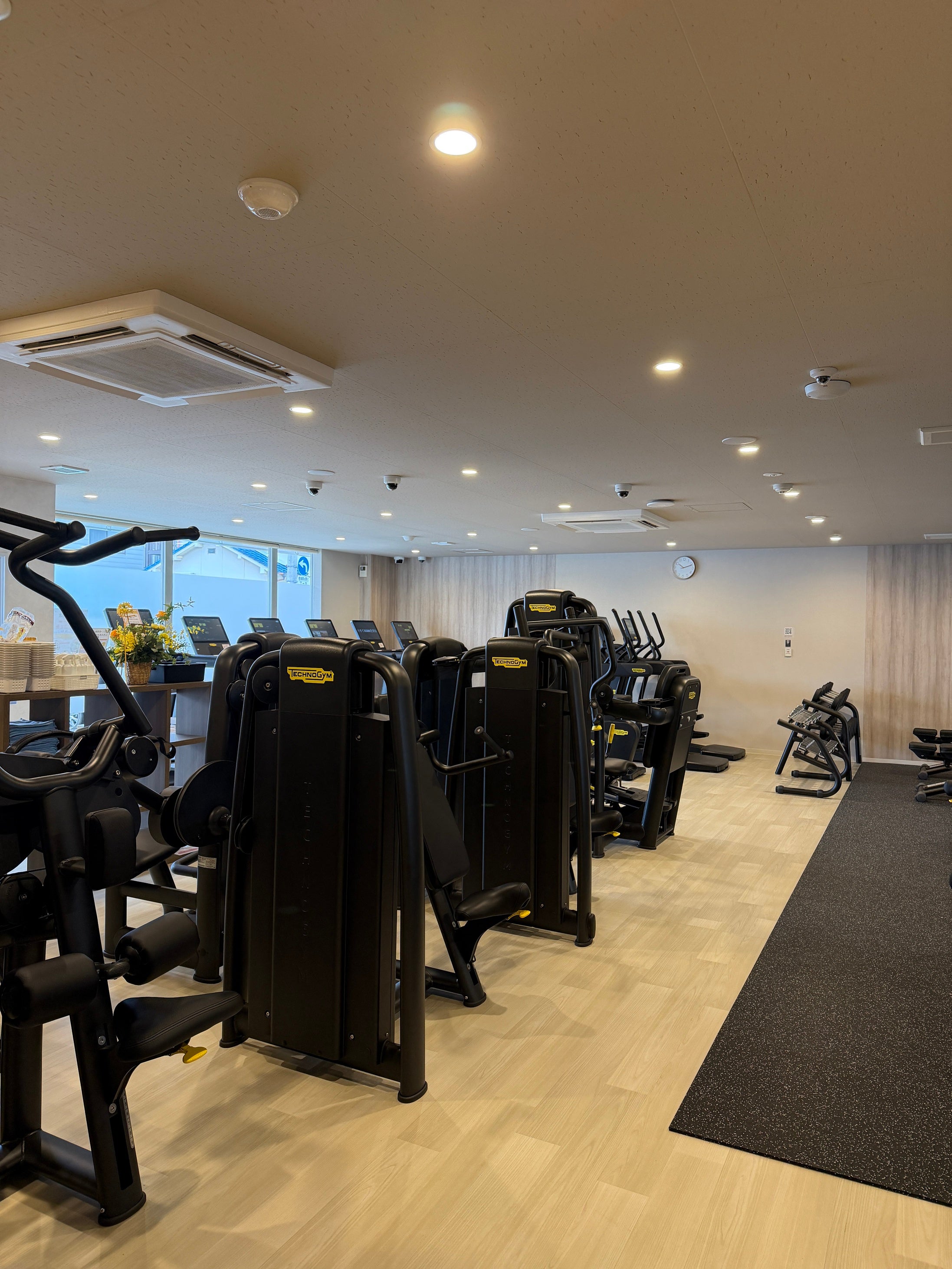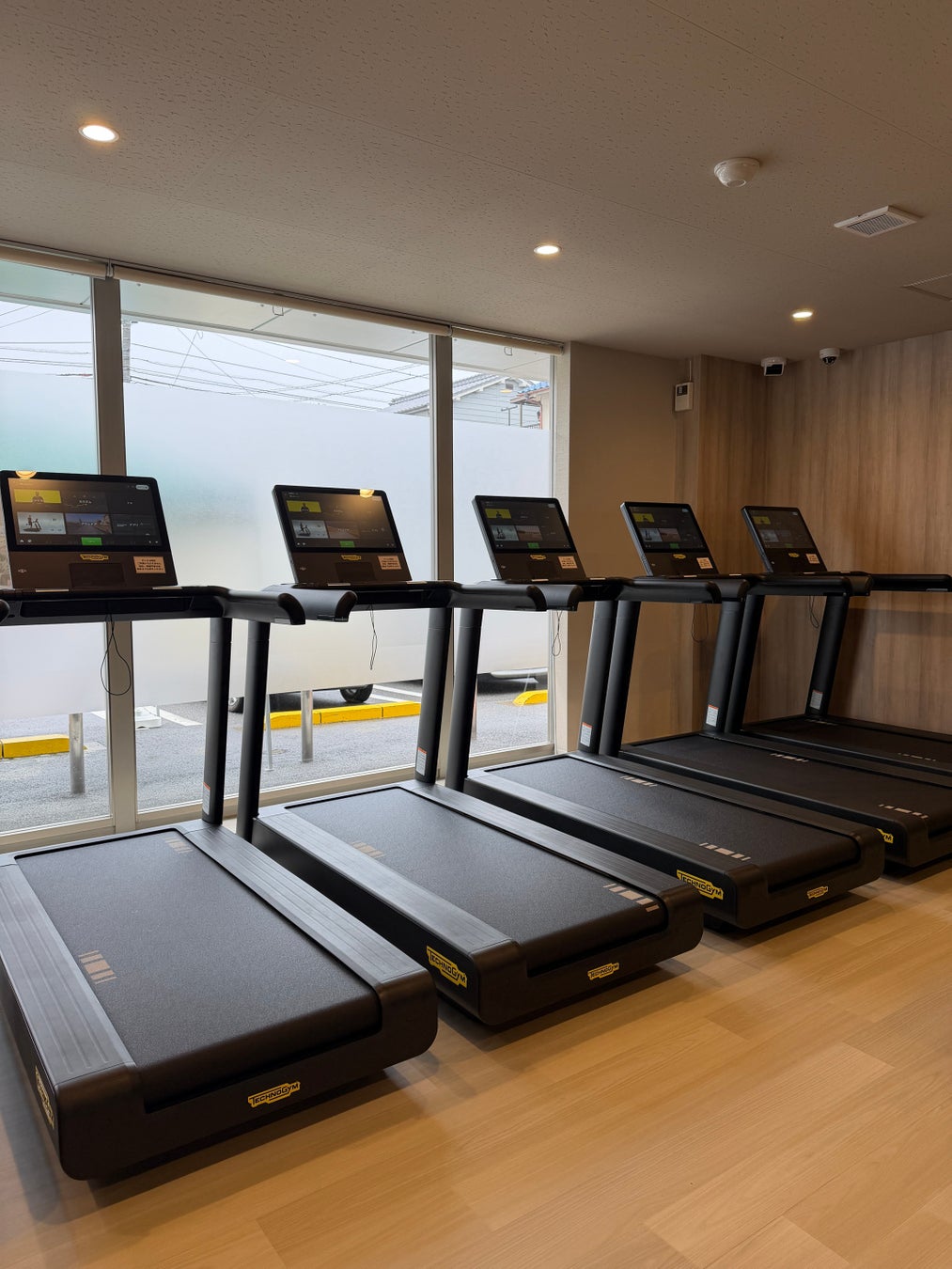 ジムエリアは24時間利用可能で、ランニングマシンや各種トレーニングマシンを完備しています。