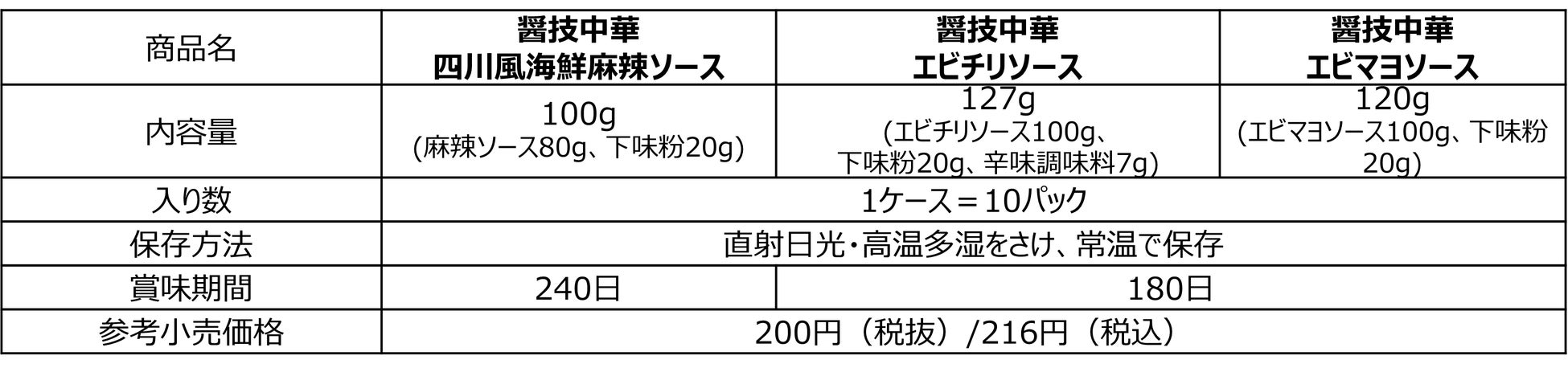 発売から20周年「醤技中華シリーズ」ラインアップ拡大『醤技中華 四川風海鮮麻辣ソース』 新発売『同 エビチリソース』『同 エビマヨソース』 リニューアル発売