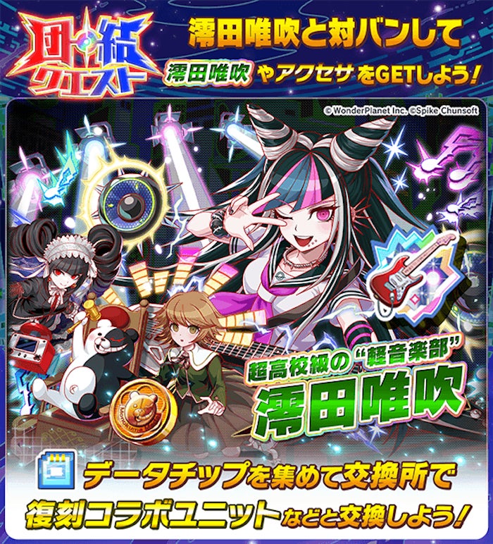 集めたデータチップは交換所で「澪田唯吹」、限定アクセサ「君にも届け!」、限定二つ名、復刻コラボユニットとモノクマメダルなどと交換しよう!