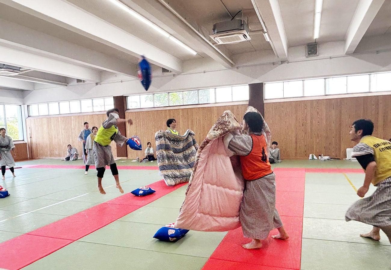 誰もが修学旅行などで経験したことのある「まくら投げ」を競技化したもの。