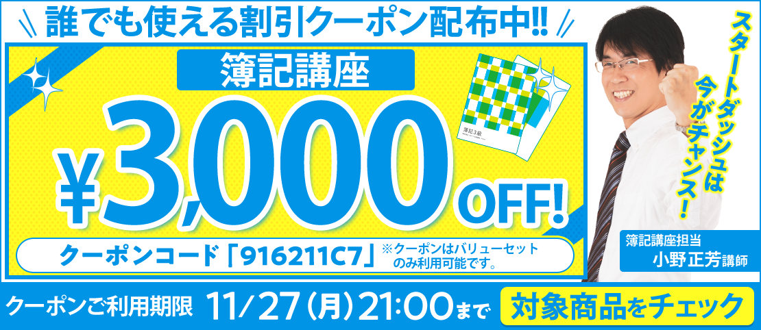 【期間限定】簿記講座 誰でも使えるクーポン 配布中!