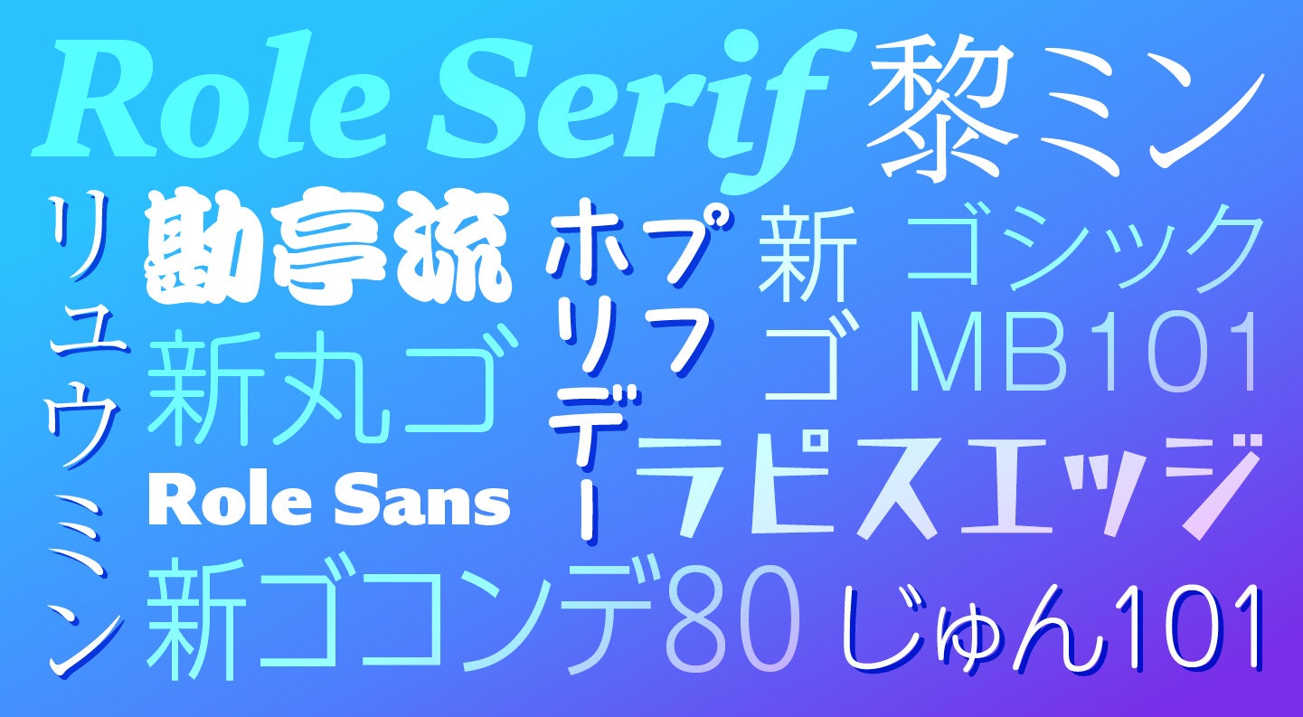 今回提供したのは、スタンダードな明朝体「リュウミン」やUD(ユニバーサルデザイン)フォントである「UD新ゴ」、近年ではうちわ文字としても人気の筆書体「勘亭流」など日本語10書体と、欧文フォント「Role」です。「Role」は4つのスタイルと3つのサイズシーンに最適化されたデザインのバリエーションを持つ、200書体を誇る欧文スーパーファミリーで、今回提供したのはRole Serif Text ProとRole Sans Text Proの2つのファミリーから32書体です。モリサワのフォントラインナップは、フォントメニュー名の冒頭に「Morisawa」と記載があるため探しやすくなっています。今後これらのフォントが、世界中のCanvaのデザインコミュニティで利用できるようになります。