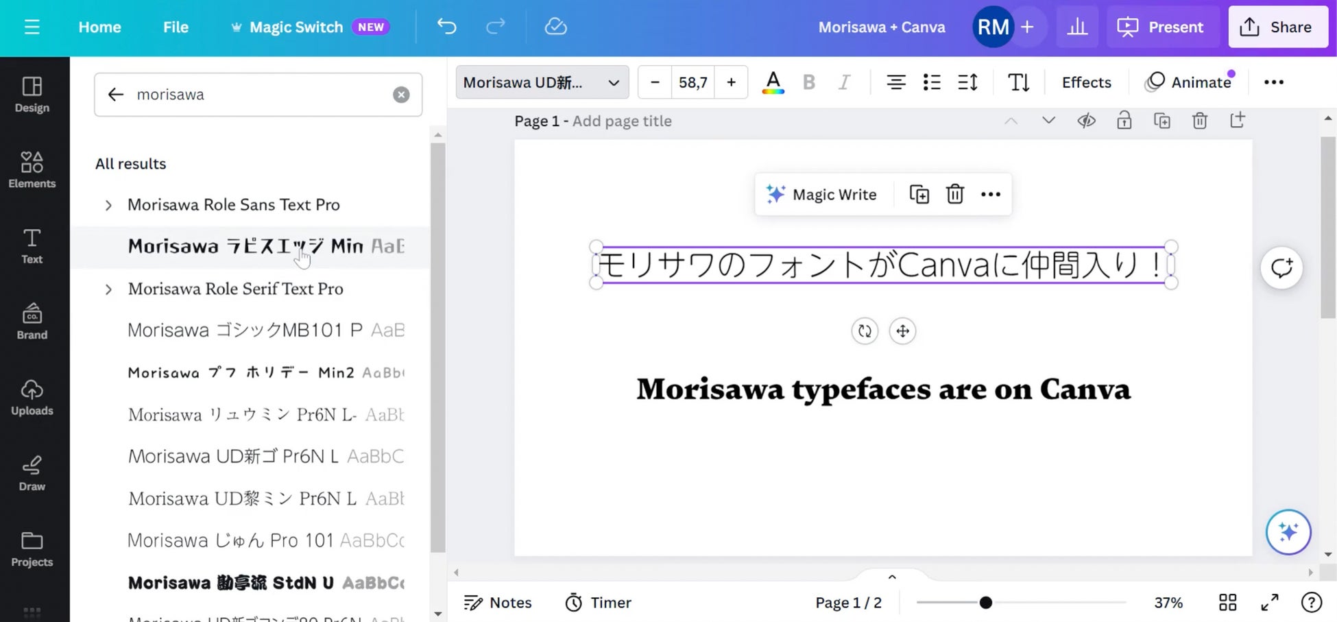 モリサワ ビジュアル・コミュニケーション・プラットフォーム「Canva」へ、UD新ゴや勘亭流など日本語フォントと欧文フォント Roleを提供開始