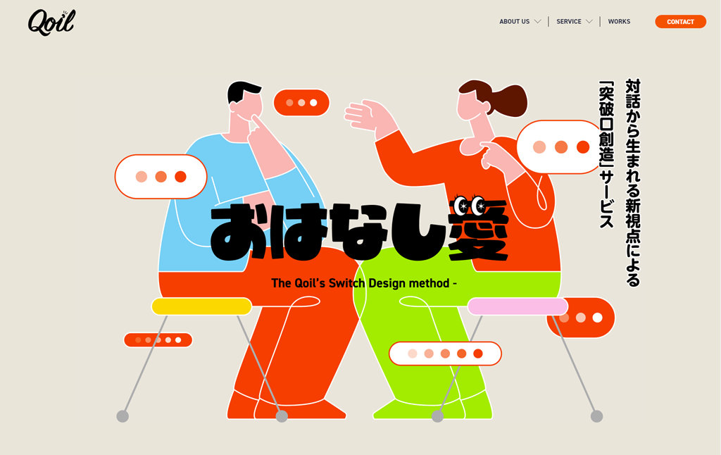 「おはなし愛」は、対話から生まれる新視点による"突破口創造"サービスです。「話し合い」と、Qoilのフィロソフィーである「愛とユーモアと。」(愛ある戦略とユーモアあるコミュニケーション)を掛けて命名しました。Qoilのコミュニケーション支援の方法論である「Switch Design 7 Journey(スイッチデザイン・セブンジャーニー)」から、人を動かすスイッチをデザインする肝となる、ステップ1の「妄想・仮説」とステップ2の「ヒアリング・壁打ち」部分を切り出してご提供します。