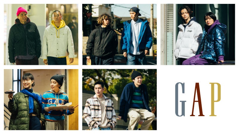 出演者は、ラッパーのin-dさん、モデル・女優・イラストレーターの田中シェンさん、Diaspora skateboardsスタッフ・スケーターの佐藤鷹来さん、スタイリストの梶雄太さん、ダンサーの宍戸叶多さんといった10代~40代のファッションアイコン5組それぞれの友達や仕事仲間にも登場していただき、ファッションアイコンたちのリアルなライフスタイルに迫るインタビューと、GapのHOLIDAYコレクションをセルフスタイリングで着こなす冬のコーディネートにも注目です。
