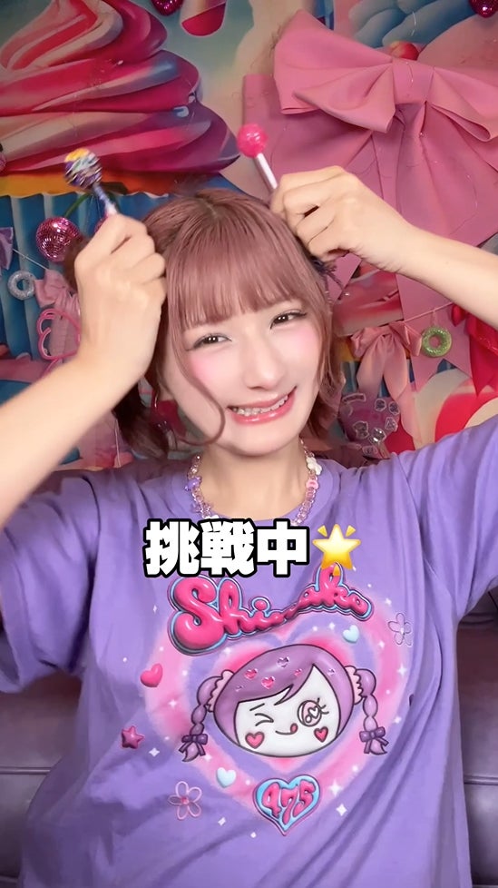 しなこさんが自らチュッパチャプスを使った楽しいミッションに挑戦する動画をTikTokで公開。