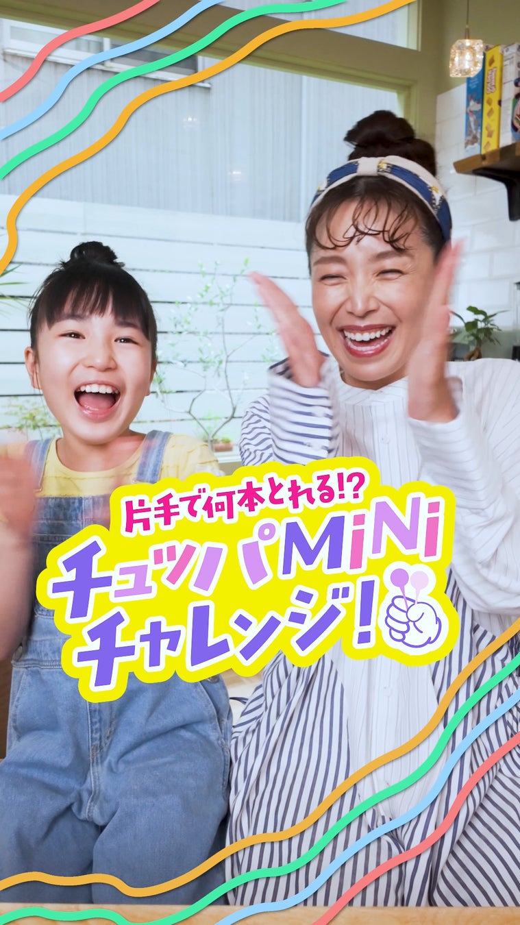 「片手で何本とれる!?チュッパminiチャレンジ!」や「チュッパ目隠し人狼!」など、見て笑って、つい真似したくなるミッションが盛りだくさん。友達同士で盛り上がる様子や、親子で協力して挑戦する微笑ましい場面など、リアルなチャレンジの楽しさがたっぷり詰まった内容になっています。