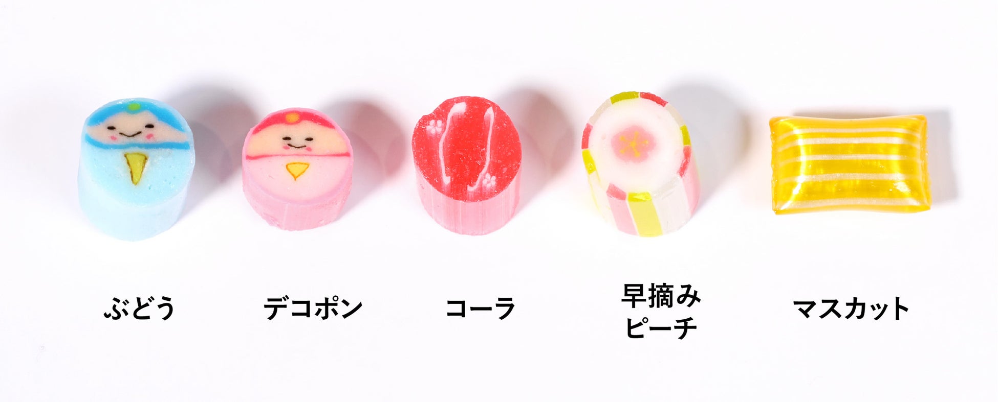 昨年好評を博したキャンディが今年も登場。色合いやツヤを出すために試行錯誤を重ね、職人がこだわり抜いて作り上げたお寿司型キャンディです。フレーバーは爽やかな味から王道の味までバランスよく揃っており、見た目とのギャップが驚きとおいしさを引き出しています。