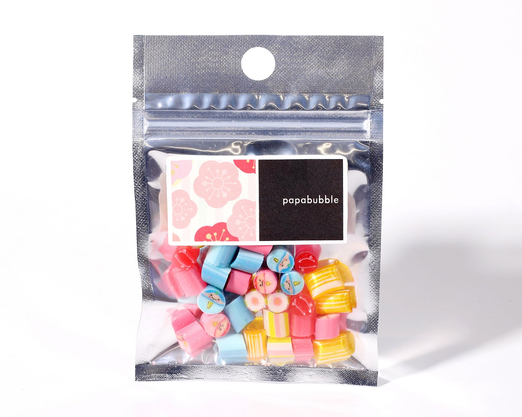 例年好評のひな祭り限定キャンディが登場。今年はカラーヘアが特徴的なお内裏様とお雛様をデザインし、パステルカラーを基調とした華やかなミックスに仕上げました。ぼんぼりの柄は、光に透かすとまるで灯りが灯っているかのように見える、職人こだわりのデザインです。