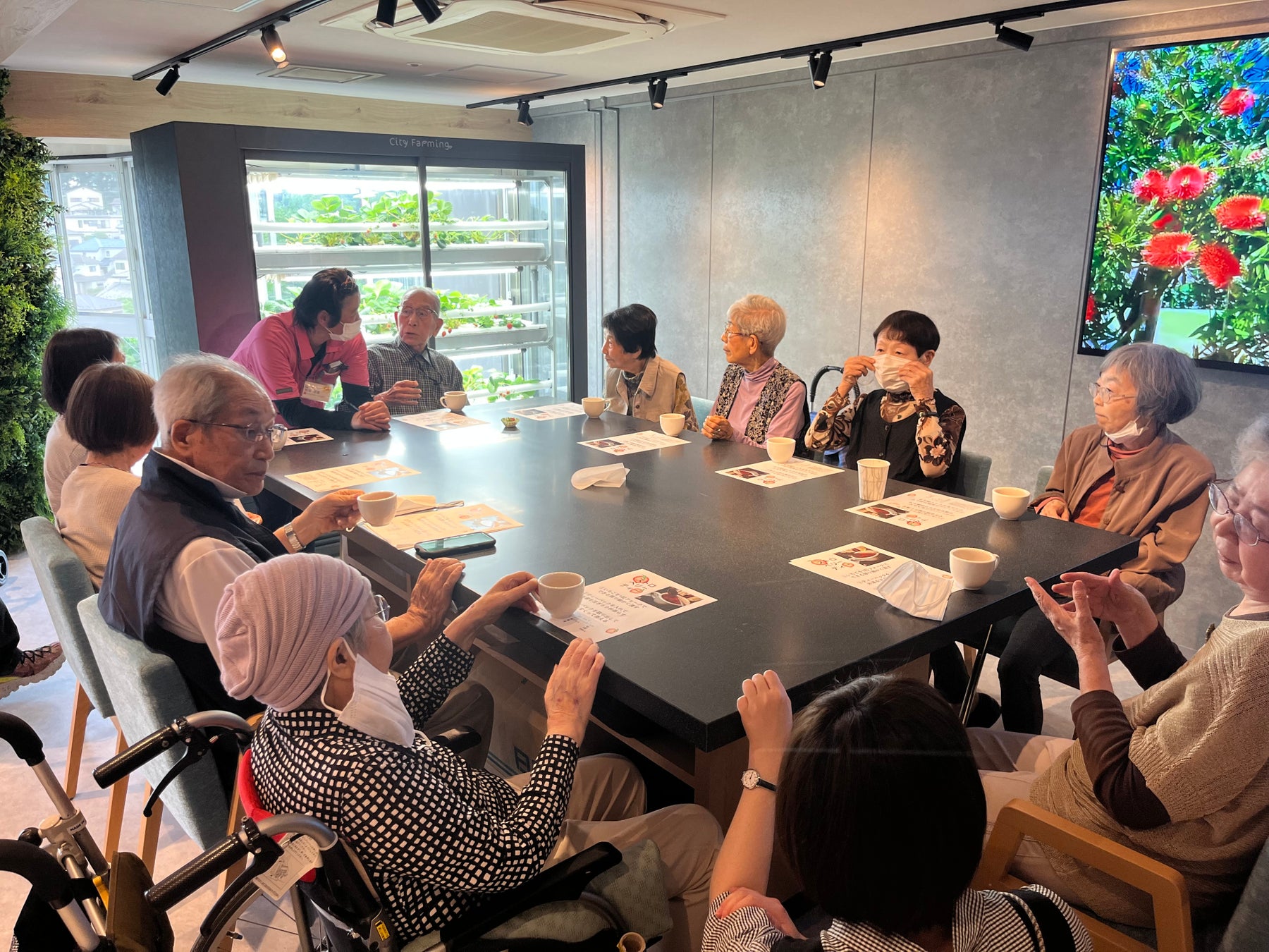株式会社エヌエムライフ(代表取締役:野田 直樹)が運営する有料老人ホーム「ジョイステージ八王子」に、City Farmingを導入しました。入居者が集まるカフェラウンジに設置し、その場で育ついちごの鮮度を感じられる、特別な時間をご提供しています。収穫したいちごは、スムージーやジャムに加工され、お食事メニューとして提供されています。また、特別イベントとして、「City Farmingと楽しむ いちごのお茶会」を開催。いちごの収穫体験やいちごを使用した特製ドリンク作りを入居者の方に楽しんでいただきました。イベントには、30名の入居者にご参加いただき、盛況のうちに終了いたしました。