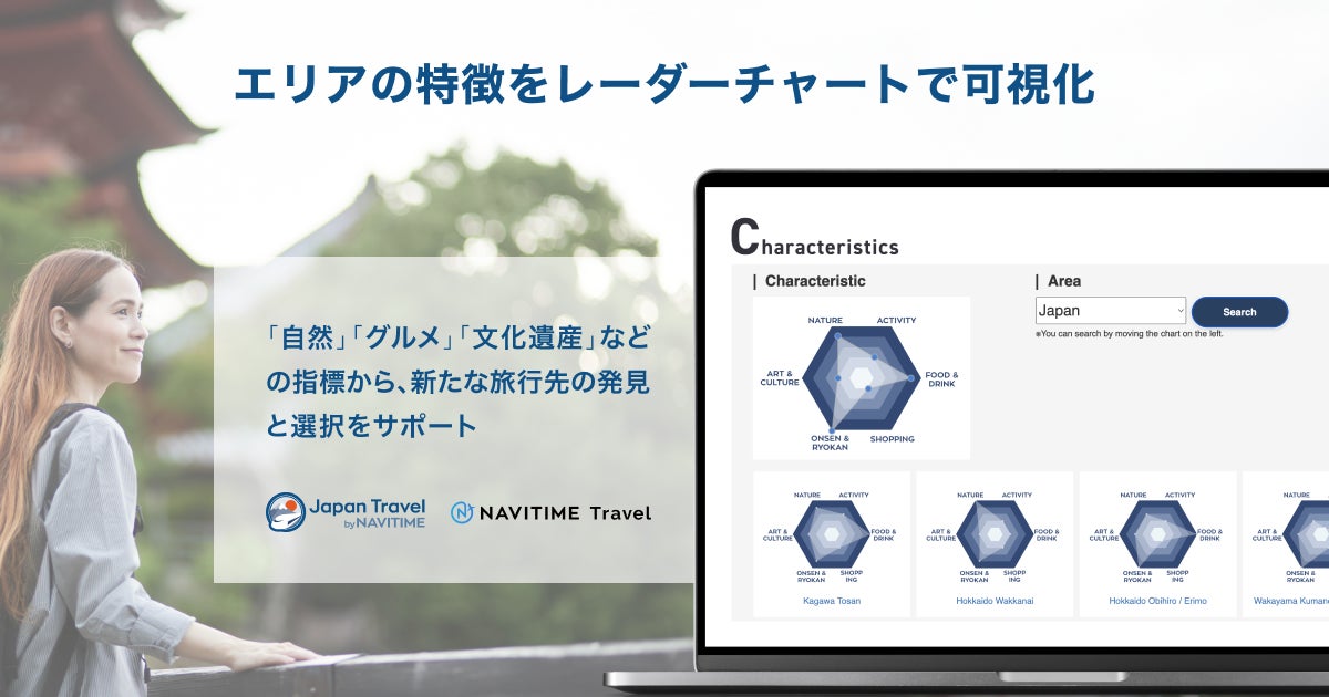 訪日・国内トラベル『Japan Travel by NAVITIME』『NAVITIME Travel』にて、エリアの特徴をレーダーチャートで可視化