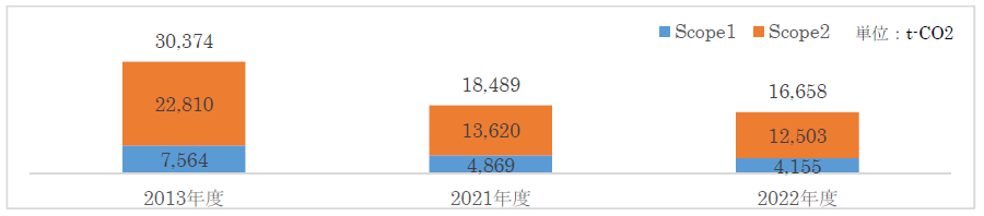 (2)CO2排出量の推移(グループ主要企業である北陸銀行および北海道銀行の国内事業所におけるScope1,2)
