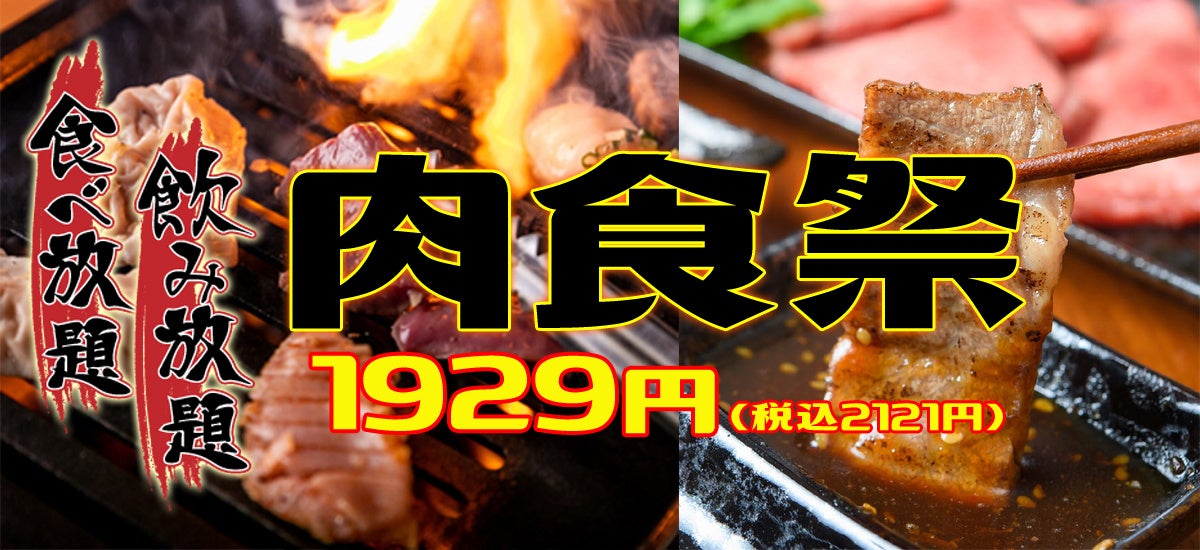 激安に挑戦!!『肉食祭!!焼肉食べ飲み放題』1929円(税込2121円)