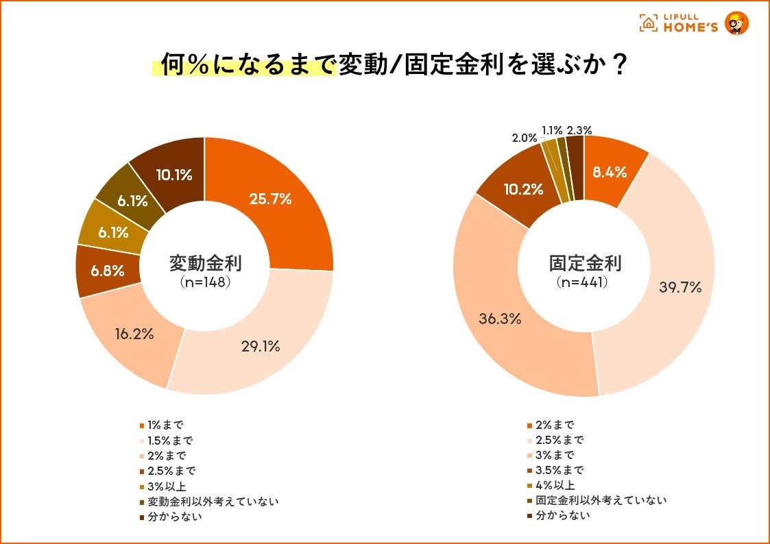 何%まで変動金利を組むか?:最多は変動金利が「1.5%まで」、固定金利が「2.5%まで」