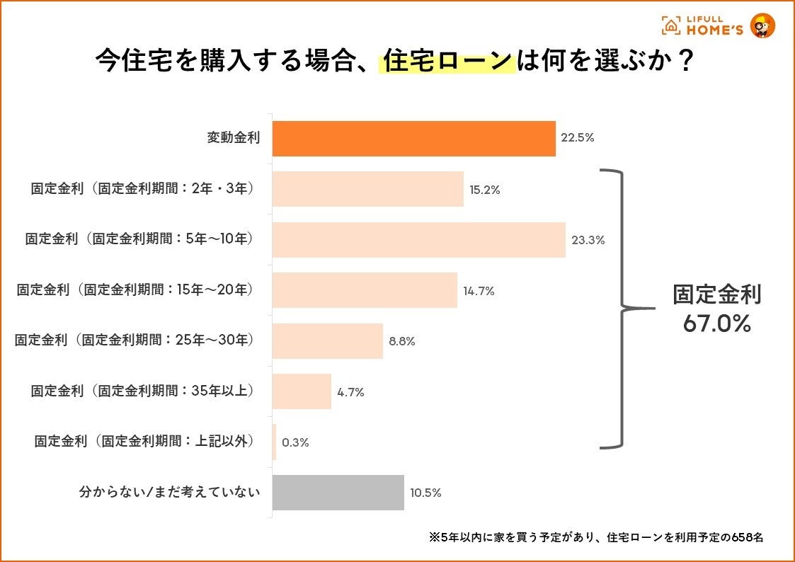 今住宅ローンを組むなら:「固定金利」67.0%、「変動金利」が22.5%