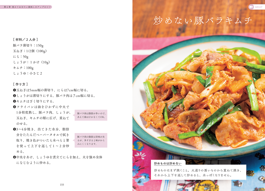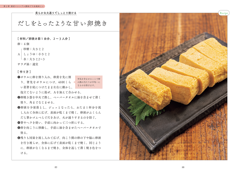 「炒めものは炒めない」「フライパンは縁を使う」「切るだけ、盛るだけ、かけるだけでいい」「だしをとらない」など、いつもの料理を「みなおし」もっとラクに美味しくなるコツを伝授しています。