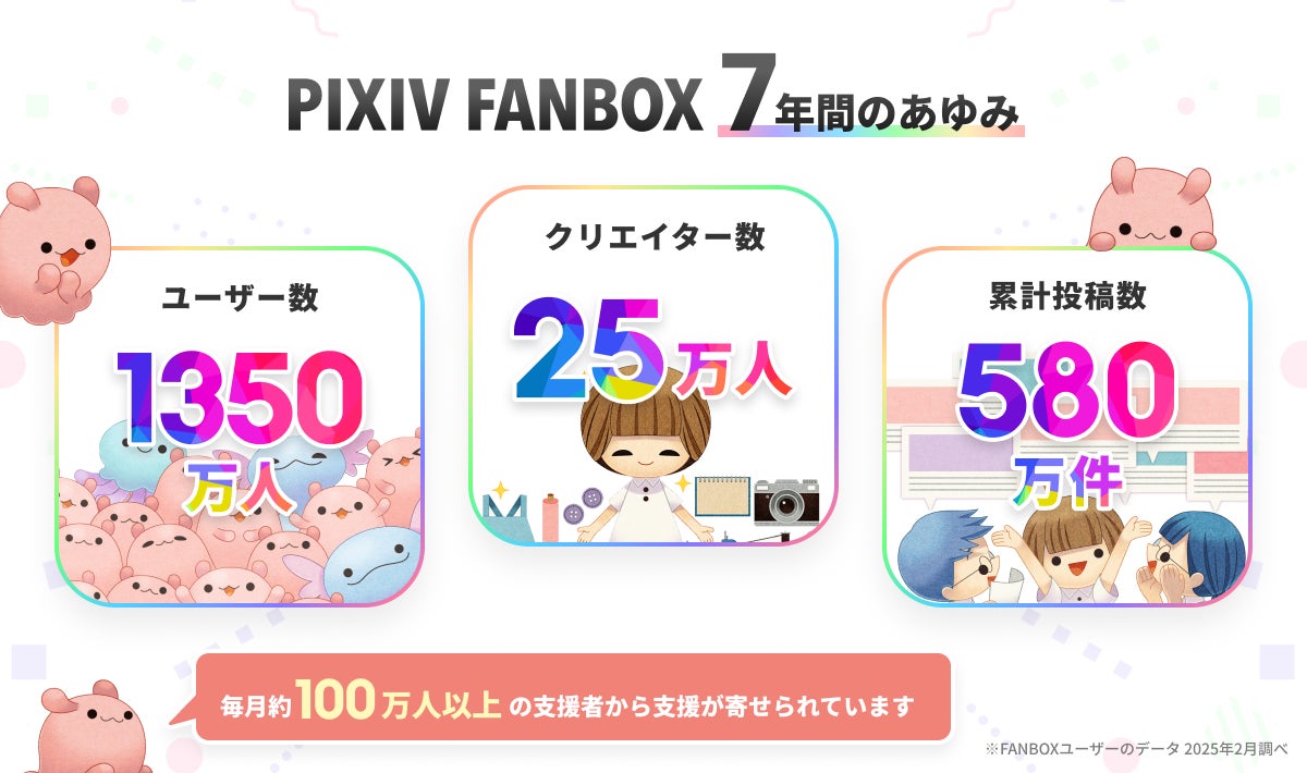 ピクシブ株式会社(本社:東京都渋谷区、代表取締役CEO:丹羽 康弘、以下ピクシブ)が運営するクリエイター支援サービス「pixivFANBOX」は、2025年4月26日(土)にサービス開始から7周年を迎えます。7周年を記念して、サービスの成長を振り返るインフォグラフィックやクリエイターのカテゴリ別トレンドデータなどを公開します。